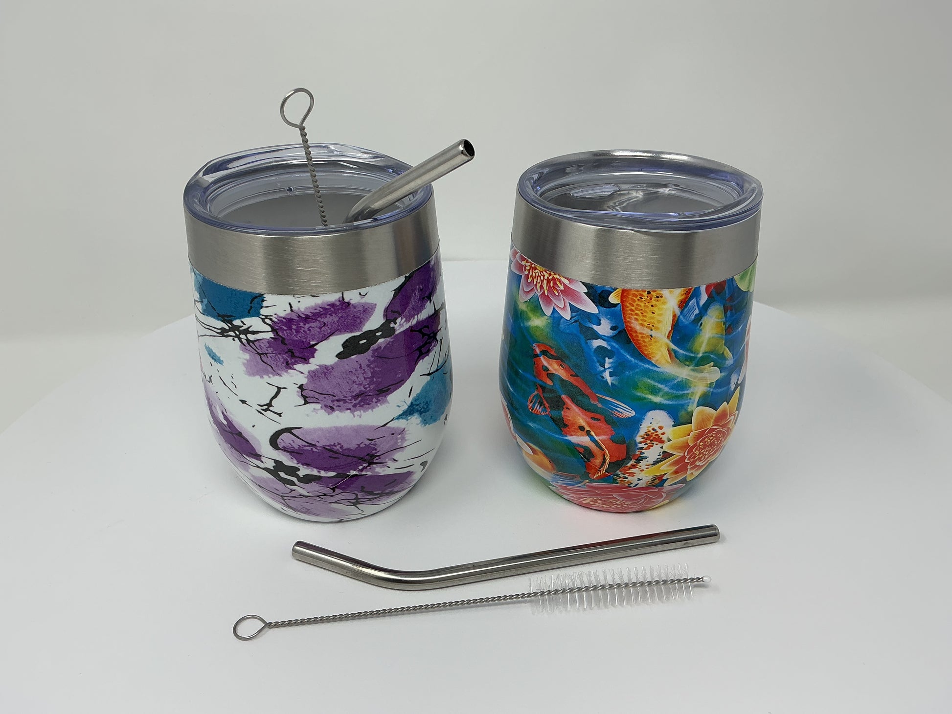Stainless steel, BPA free, Hot or cold, Vacuum seal lid, Metal straw and cleaning brush included.. Choice of background colour and hydro film. Hydro film used in the picture is (koi fish pond, water paint flowers) Engraving available, extra charge.